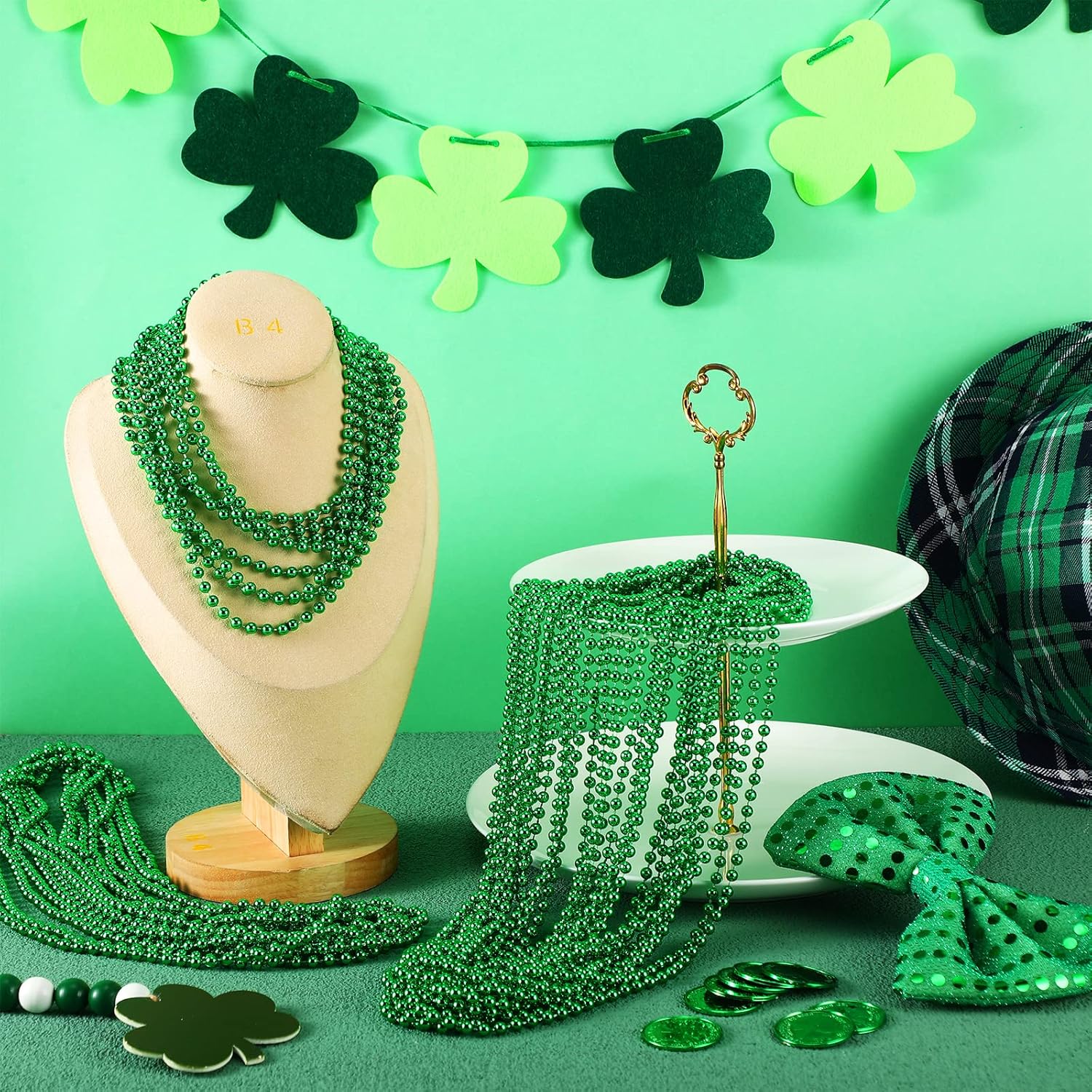 Features: These St. Patrick's Day decors are ideal for parties, carnivals, celebration events. These beads give you a good idea for party decorations and dress ups. The green beads decor is also suitable for Mardi Gras party, New Year decoration, Christmas decoration and dress up party. Specifications: Material: plastic metallic Color: green Size: about 31.5 inch in length Package includes: 500 x Saint Patrick's Day decors Notes: Manual measurement, please allow slight errors on size. The color may exist a slight difference due to different screen displays