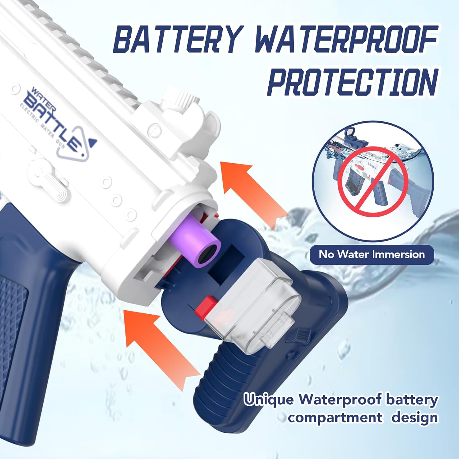 • 【BATTERY PROTECTION AND GOOD WATERPROOF】- The water gun is equipped with a battery protection cover. After installing the battery, use the protective cover to ensure that the battery will not be soaked.