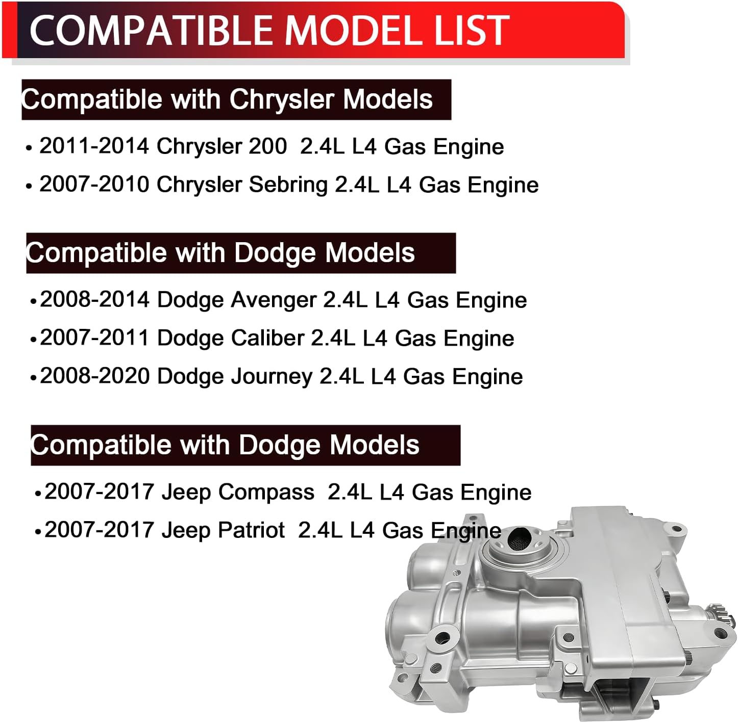 Engine Oil Pump Compatible with Dodge Avenger 2008-2014, Caliber 2007-2011, Journey 2008-2020; Compatible with Chrysler 200 2011-2014, Sebring 2007-2010; Compatible with Jeep Compass Patriot 2007-2017--- 2.4L L4
