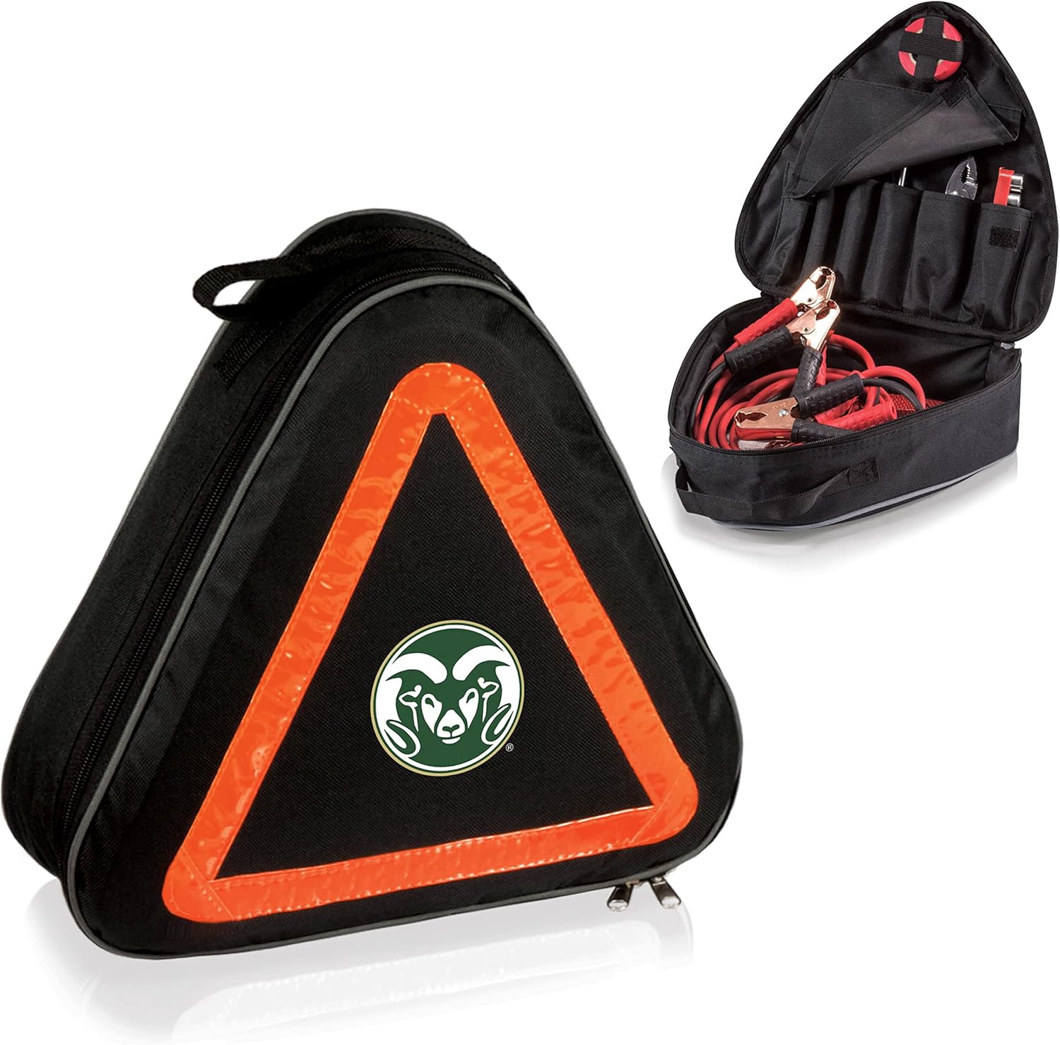 Safety first for you and your loved ones with the Picnic Time Roadside Emergency Kit, a compact car tool kit with the basics for auto emergencies. The triangular-shaped tote is lined with reflective tape to double as a roadside hazard sign.