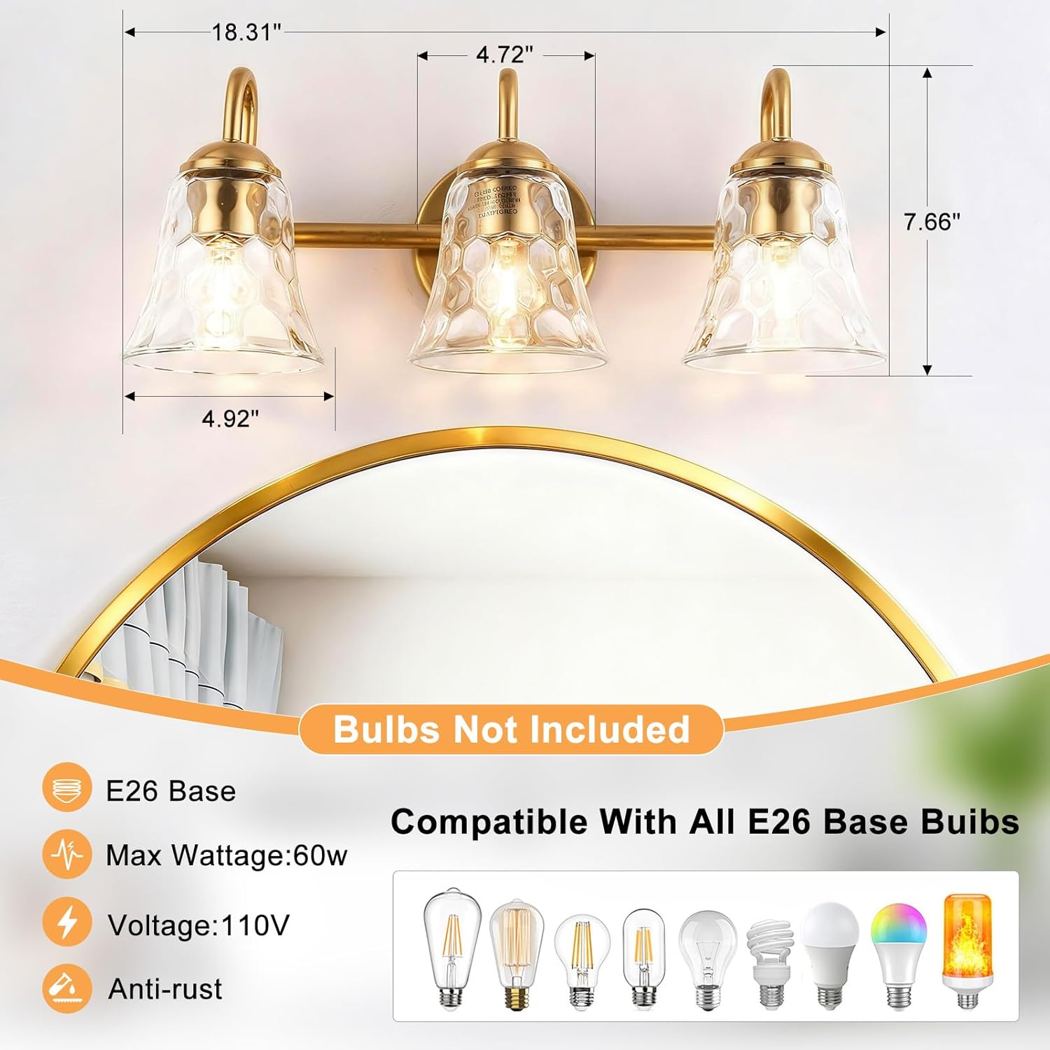 | Room Type | bedroom light fixture, hallway light fixtures, shower lamp, vanity lights, wall lights |