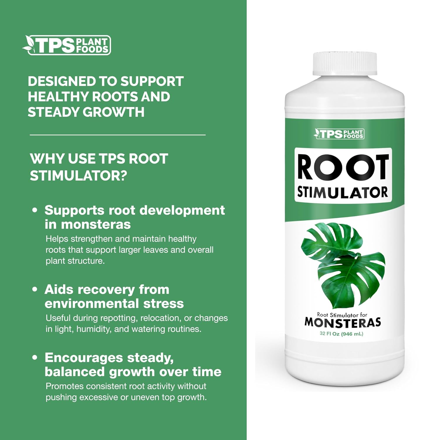 Support healthier roots and stronger growth with Root Stimulator for Monsteras, a liquid root booster formulated specifically for monstera plants. This supplement focuses on root development to help monsteras establish more effectively and maintain long-term health. Formulated with probiotics and seaweed, this monstera root stimulator helps support nutrient uptake, root growth, and recovery after repotting or transplanting. Strong roots are essential for monsteras to support large leaves, aerial roots, and steady growth indoors. Gentle enough for routine use, this liquid root booster can be applied during regular watering and works alongside your existing monstera plant food. It supports root health without forcing excessive top growth or causing fertilizer stress. Whether you’re repotting a mature monstera, helping a young plant establish, or supporting recovery after stress, this root stimulator offers a simple, effective way to promote healthy root systems and long-term plant vitality.