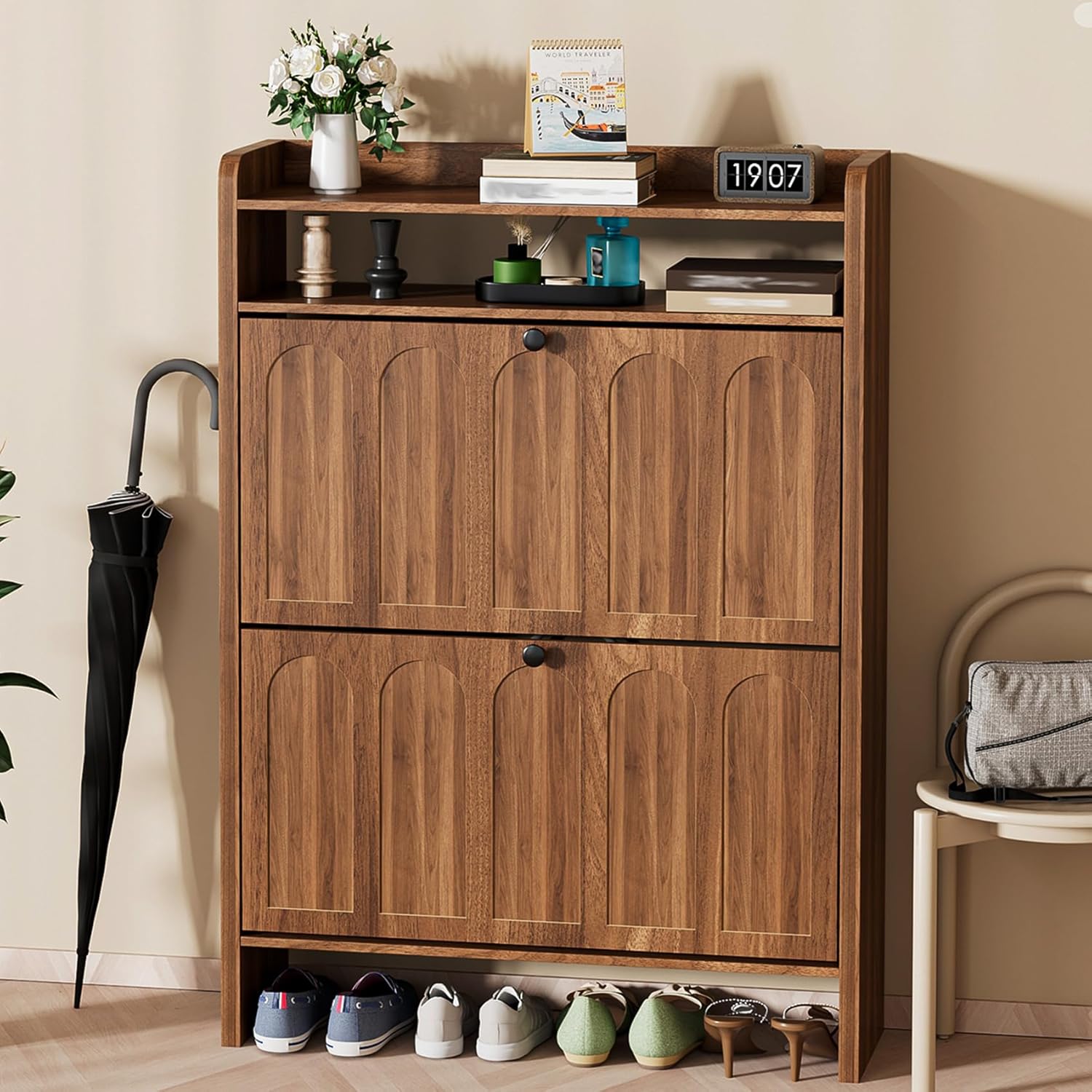 Shoe Storage Cabinet for Entryway with 2 Flip Drawers, Freestanding Narrow Shoe Storage Organizer Cabinet for Entryway